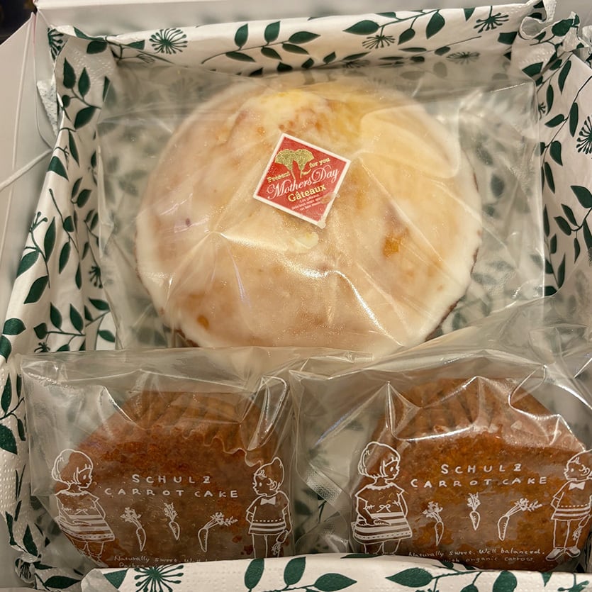 そしてお菓子は母の日ギフト「スペシャルレモンケーキ」と「花束クッキー」「キャロットケーキ」を一緒にしてお届けします。