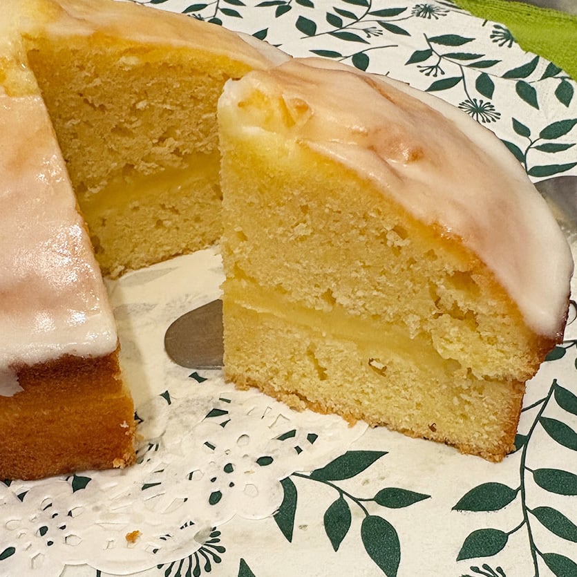 国産レモン果汁を入れた生地の間にレモンガードをサンド。TOPはレモンアイシングで飾りました。レモンが三重に効いて爽やかでおいしいケーキに仕上がりました。2~4名様で召し上がっていただける12cmサイズです。